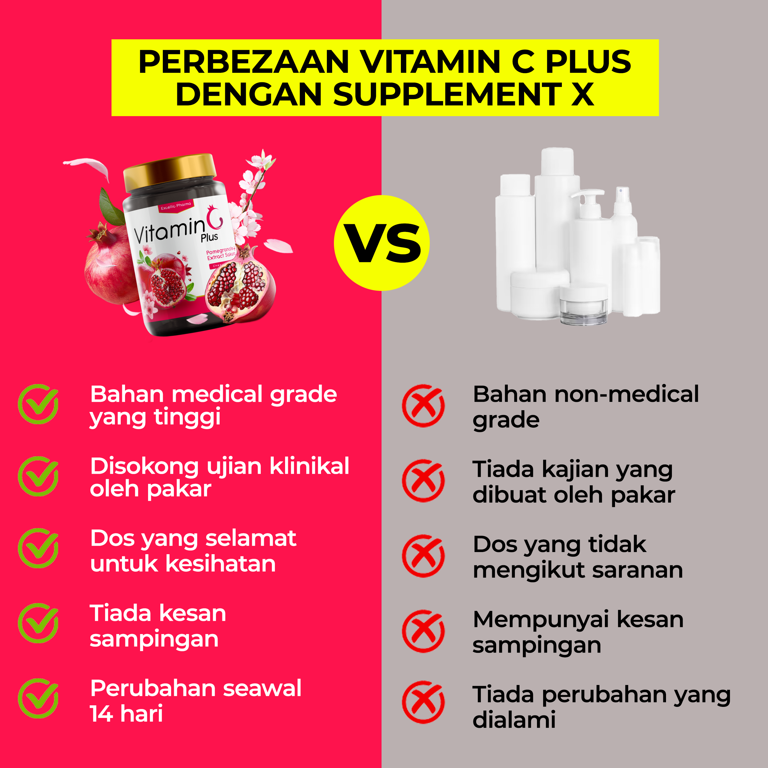 Vitamin C Plus telah mendapat Sijil Lab Test yg menunjukkan bebas dari bahan toksik & bahaya